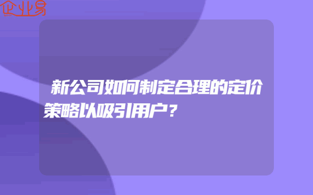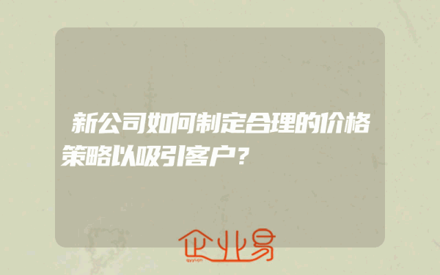 - 新公司如何制定合理的价格策略以吸引客户?
