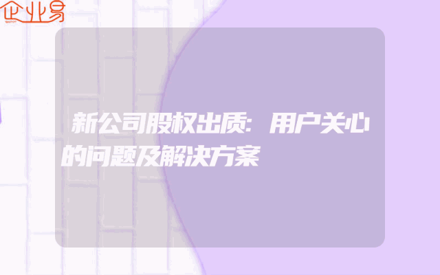 - 新公司股权出质:用户关心的问题及解决方案在商业活动中,股权出质是一种常见的融资手段。对于新成立的公司来说,股权出质可能涉及到许多用户关心的问题。本文将针对这些问题,提供一些解决方案。问题一:股权出质的定义是什么?股权出质是指股东将其持