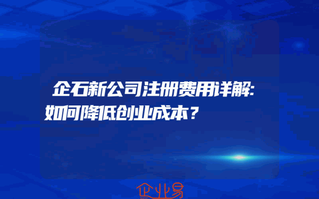 - 企石新公司注册费用详解:如何降低创业成本?