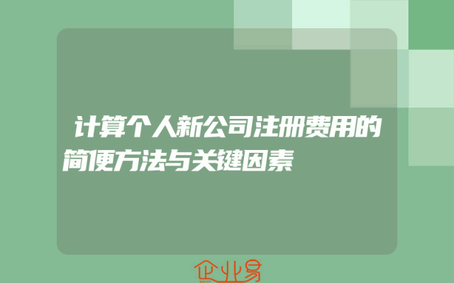 - 计算个人新公司注册费用的简便方法与关键因素