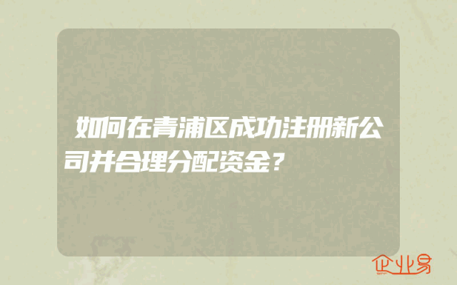 - 如何在青浦区成功注册新公司并合理分配资金?