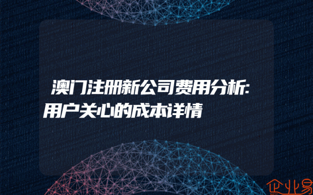 - 澳门注册新公司费用分析:用户关心的成本详情