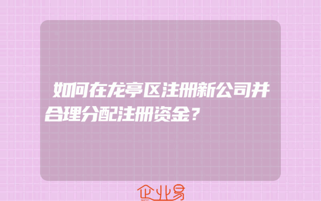 - 如何在龙亭区注册新公司并合理分配注册资金?