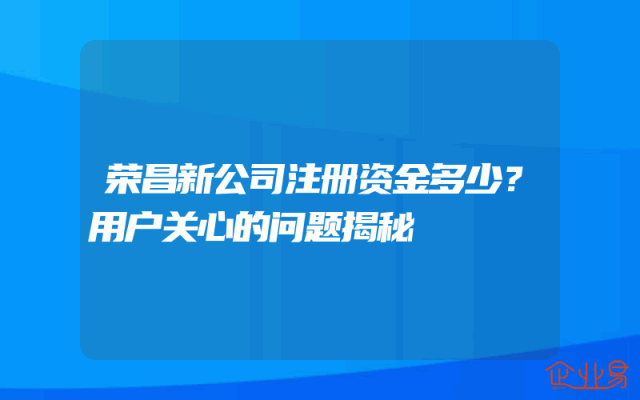 - 荣昌新公司注册资金多少?用户关心的问题揭秘