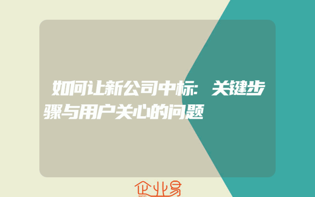 - 如何让新公司中标:关键步骤与用户关心的问题