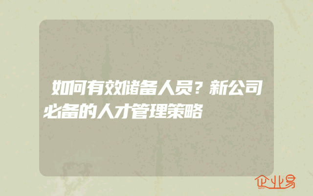 - 如何有效储备人员?新公司必备的人才管理策略在当今竞争激烈的商业环境中,拥有一支高效且有才华的团队对于公司的成功至关重要。特别是对于新成立的公司来说,有效的人才储备策略是确保公司长期发展的关键。本文将探讨新公司如何制定和实施人才管理策略,以有