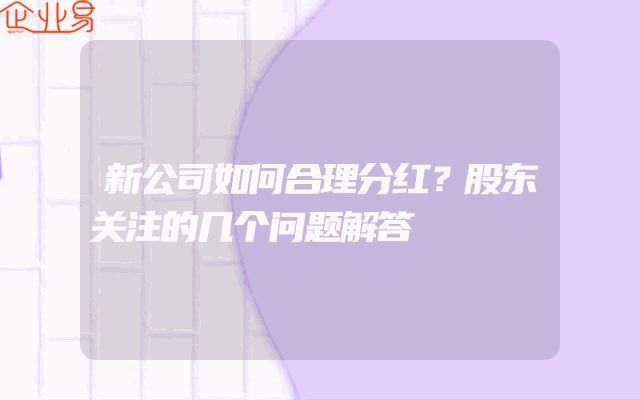 - 新公司如何合理分红?股东关注的几个问题解答
