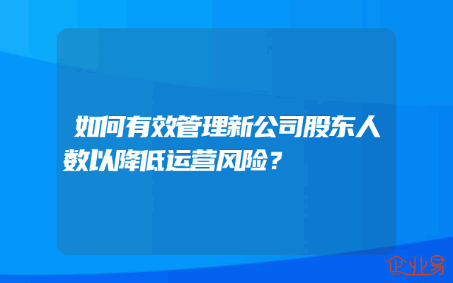 - 如何有效管理新公司股东人数以降低运营风险?