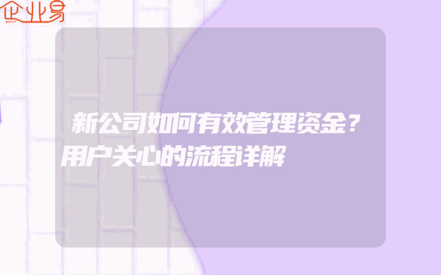 - 新公司如何有效管理资金?用户关心的流程详解随着经济的发展,越来越多的人选择创业,成立自己的公司。然而,创业初期的公司往往面临着资金紧张的问题。如何有效地管理资金,确保公司的正常运营,是每个新公司都需要关注的问题。本文将详细介绍新公司在资金管