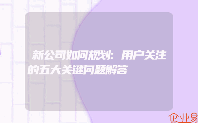 - 新公司如何规划:用户关注的五大关键问题解答对于新成立的公司来说,制定一份合理的发展规划至关重要。这不仅有助于公司实现长期目标,还能提高员工的工作效率和满意度。本文将针对新公司在规划过程中可能遇到的五大关键问题进行解答,帮助新公司更好地发展。
