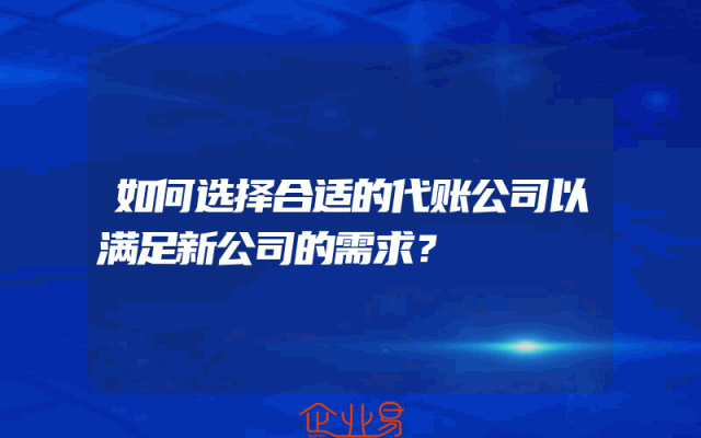 - 如何选择合适的代账公司以满足新公司的需求?在创业初期,许多新成立的公司都会面临着财务管理的压力。为了减轻这种压力,很多公司会选择将财务工作外包给专业的代账公司。那么,如何选择合适的代账公司以满足新公司的需求呢?本文将从以下几个方面为您提供一