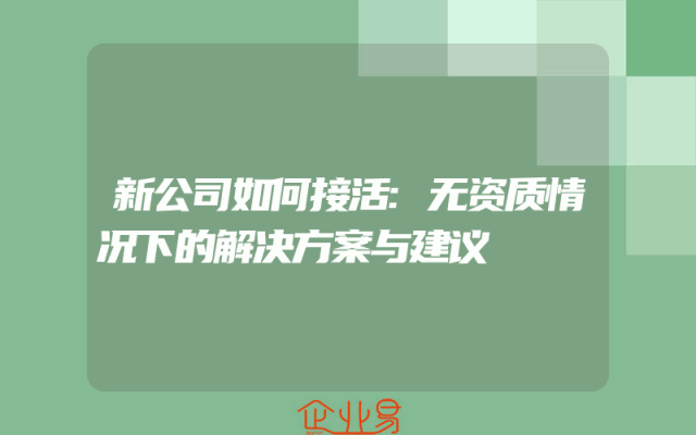- 新公司如何接活:无资质情况下的解决方案与建议