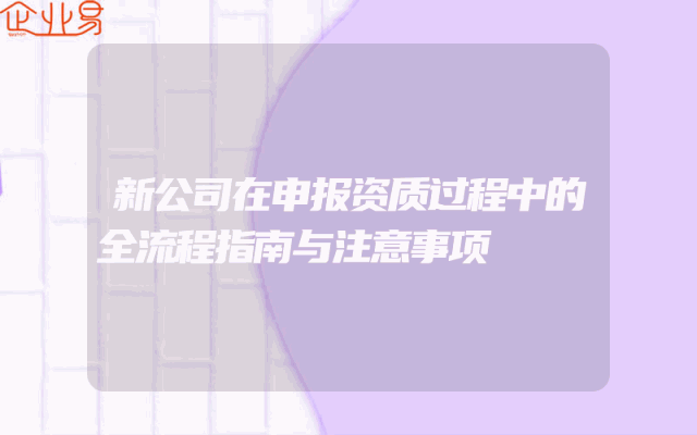 - 新公司在申报资质过程中的全流程指南与注意事项申报资质对于新公司来说是一个重要的步骤,它不仅关系到公司的正常运营,而且还涉及到公司的法律地位和业务范围。因此,新公司在申报资质时需要遵循一定的流程,并注意一些关键的事项。本文将详细介绍新公司在申