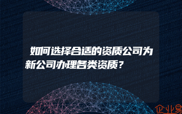 - 如何选择合适的资质公司为新公司办理各类资质?