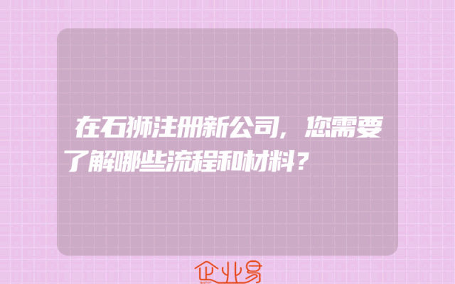 - 在石狮注册新公司,您需要了解哪些流程和材料?