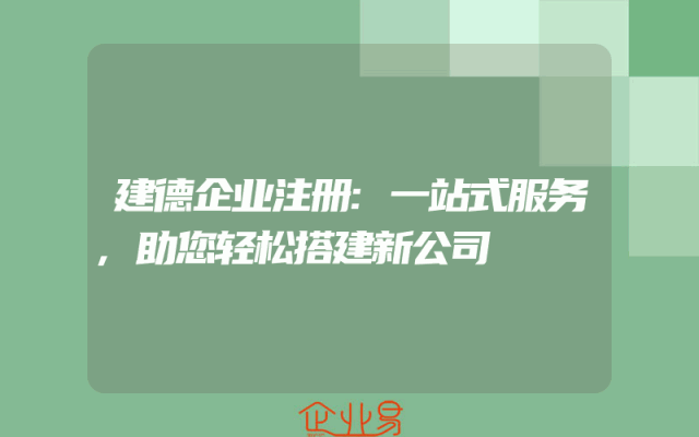- 建德企业注册:一站式服务,助您轻松搭建新公司