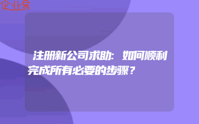 - 注册新公司求助:如何顺利完成所有必要的步骤?
