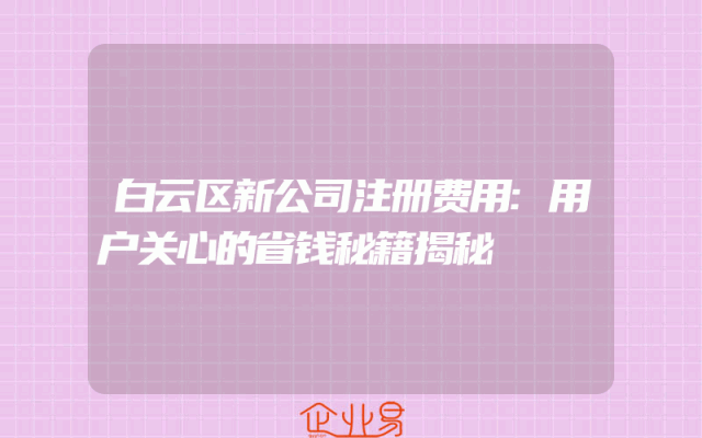 - 白云区新公司注册费用:用户关心的省钱秘籍揭秘