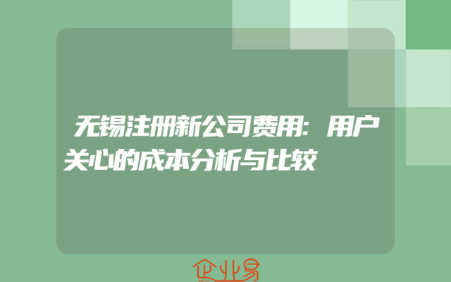 - 无锡注册新公司费用:用户关心的成本分析与比较