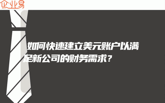 - 如何快速建立美元账户以满足新公司的财务需求?在全球化的经济环境中,许多新公司需要与国际市场进行交流和交易。为了满足这些需求,建立一个美元账户是至关重要的。本文将为您提供一些关于如何快速建立美元账户的建议,以便您能够顺利地满足新公司的财务需求