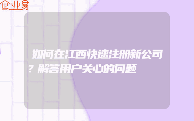 - 如何在江西快速注册新公司?解答用户关心的问题