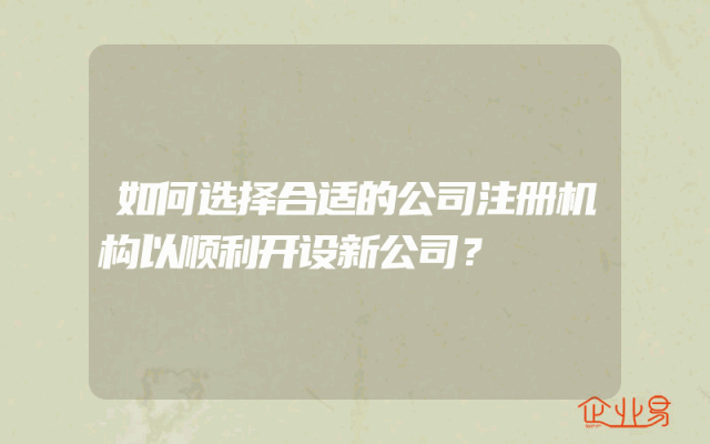 - 如何选择合适的公司注册机构以顺利开设新公司?