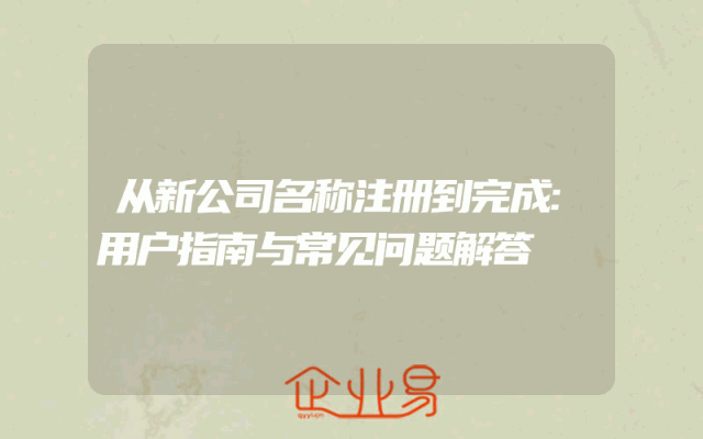 - 从新公司名称注册到完成:用户指南与常见问题解答