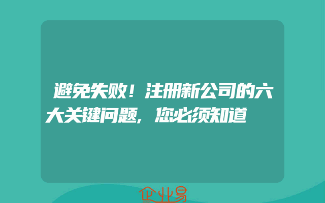 - 避免失败!注册新公司的六大关键问题,您必须知道