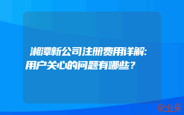 - 湘潭新公司注册费用详解:用户关心的问题有哪些?