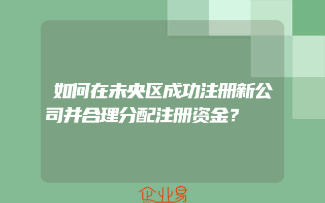 - 如何在未央区成功注册新公司并合理分配注册资金?
