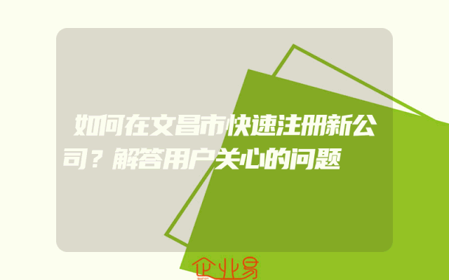 - 如何在文昌市快速注册新公司?解答用户关心的问题