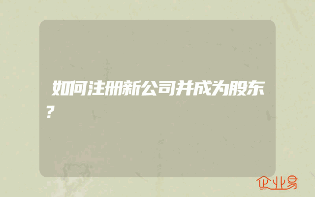 - 如何注册新公司并成为股东?