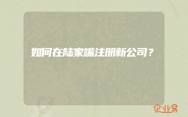 - 如何在陆家嘴注册新公司?