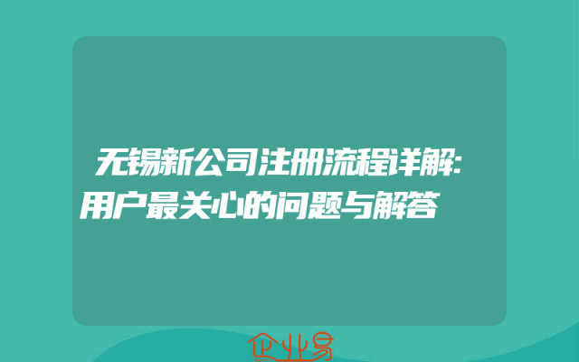 - 无锡新公司注册流程详解:用户最关心的问题与解答