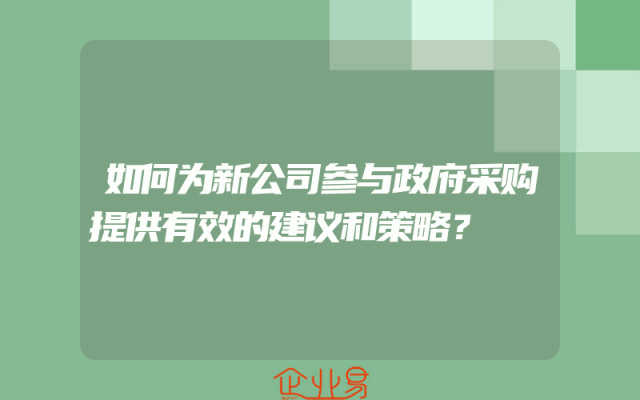 - 如何为新公司参与政府采购提供有效的建议和策略?