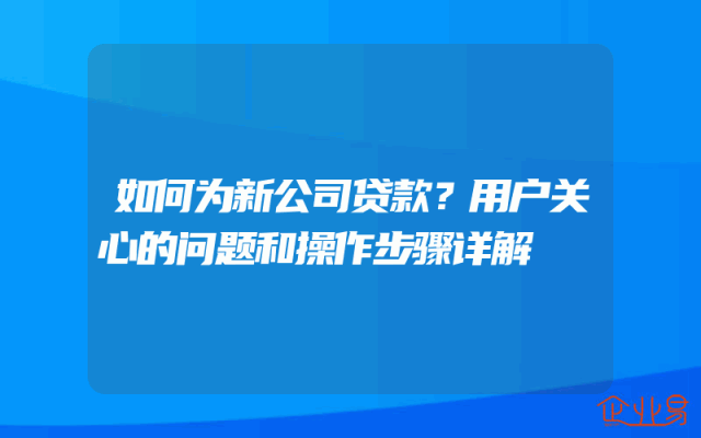 - 如何为新公司贷款?用户关心的问题和操作步骤详解