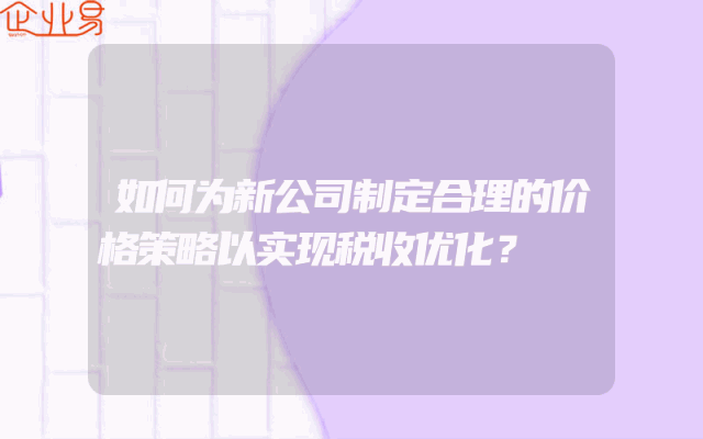 - 如何为新公司制定合理的价格策略以实现税收优化?