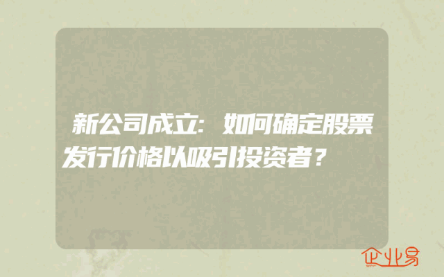 - 新公司成立:如何确定股票发行价格以吸引投资者?