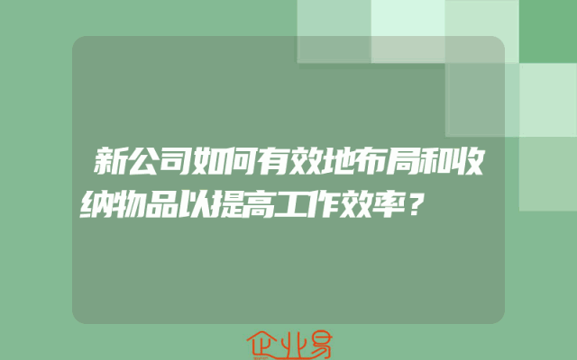 - 新公司如何有效地布局和收纳物品以提高工作效率?