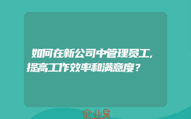 - 如何在新公司中管理员工,提高工作效率和满意度?