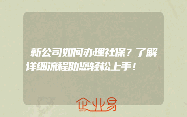 - 新公司如何办理社保?了解详细流程助您轻松上手!