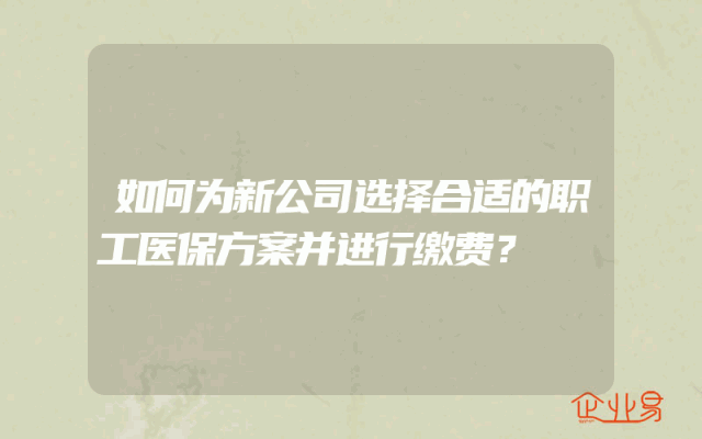 - 如何为新公司选择合适的职工医保方案并进行缴费?