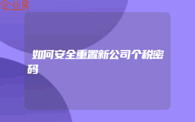 - 如何安全重置新公司个税密码?用户关心的问题解答在现代社会,税收管理已经成为了国家财政的重要组成部分。为了确保税收的准确性和及时性,许多企业都需要使用专门的税务管理系统来处理相关的业务。然而,对于一些新成立的公司来说,他们可能还没有来得及设置