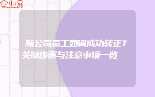 - 新公司员工如何成功转正?关键步骤与注意事项一览在职场中,新员工的转正是每个公司都非常关注的问题。对于新员工来说,成功转正不仅意味着他们的工作得到了认可,也是他们职业生涯的一个重要里程碑。那么,新公司员工如何才能成功转正呢?本文将为你提供一些