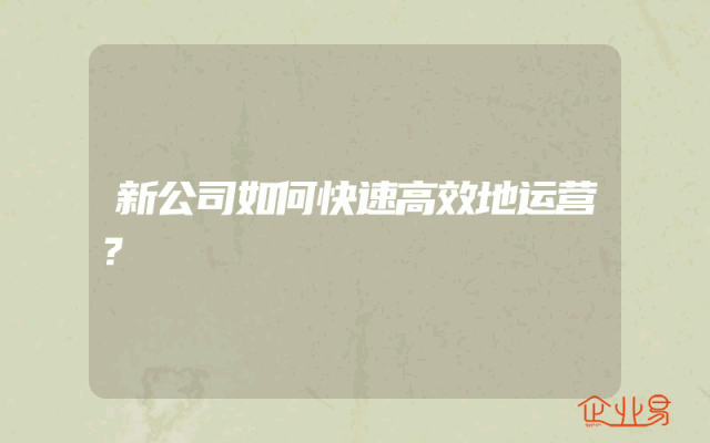 - 新公司如何快速高效地运营?