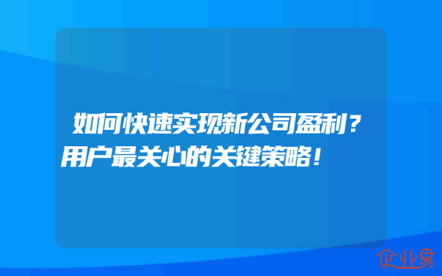 - 如何快速实现新公司盈利?用户最关心的关键策略!
