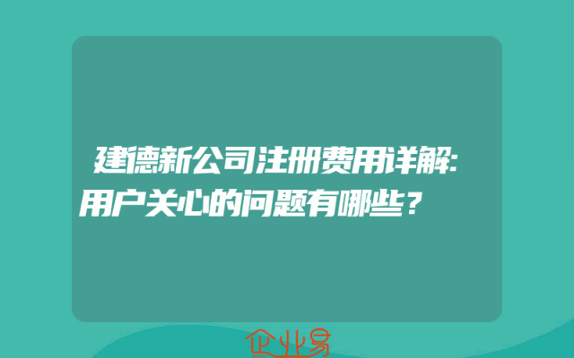 - 建德新公司注册费用详解:用户关心的问题有哪些?