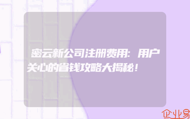 - 密云新公司注册费用:用户关心的省钱攻略大揭秘!