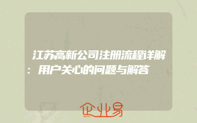 - 江苏高新公司注册流程详解:用户关心的问题与解答