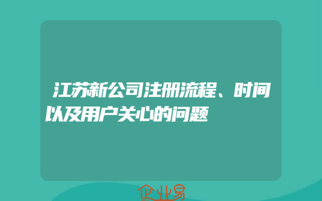 - 江苏新公司注册流程、时间以及用户关心的问题